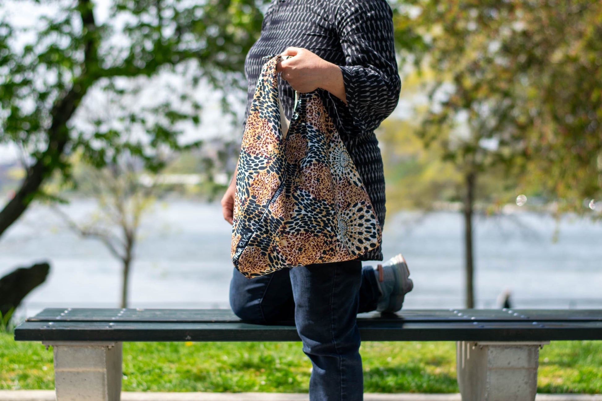 Over 150 years ago, when the Japanese encountered Western culture and witnessed bags, someone was inspired to create the azuma sack, which is a hybrid of a furoshiki and a bag. An azuma sack is minimally sewn, and two ends of the fabric are tied to tote around, but can be untied to take things in and out easily.