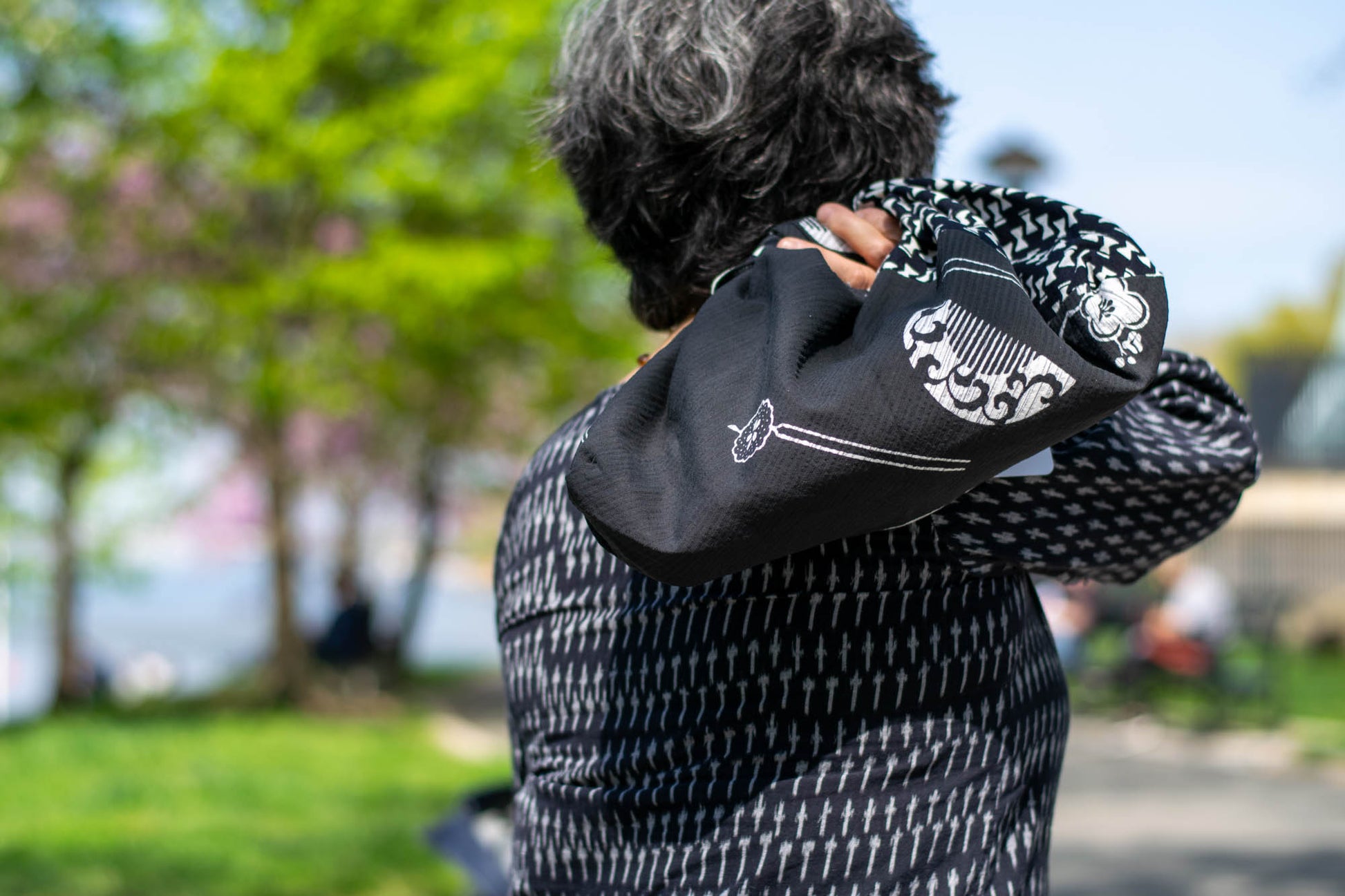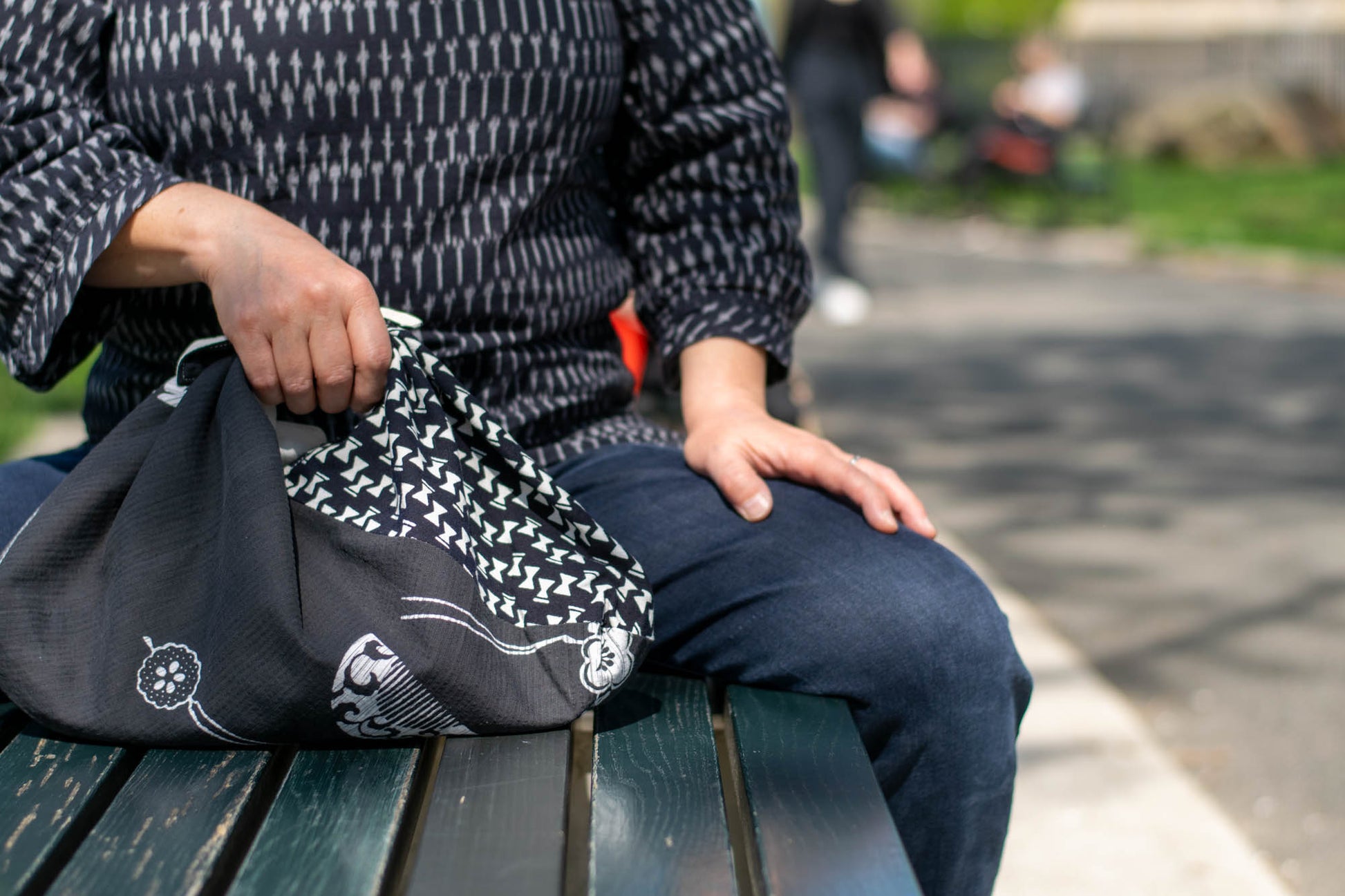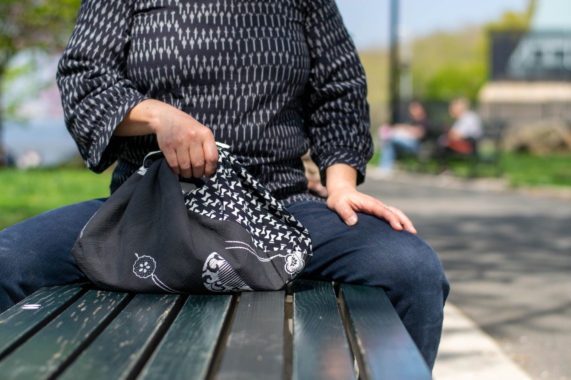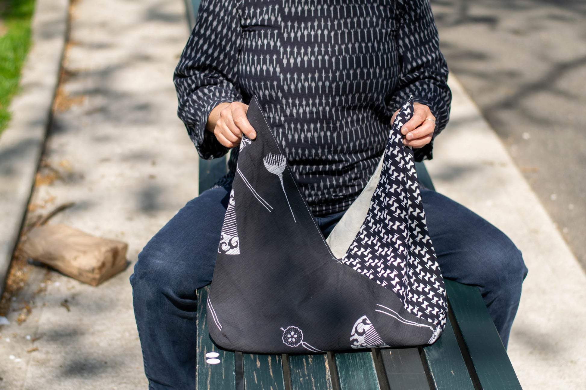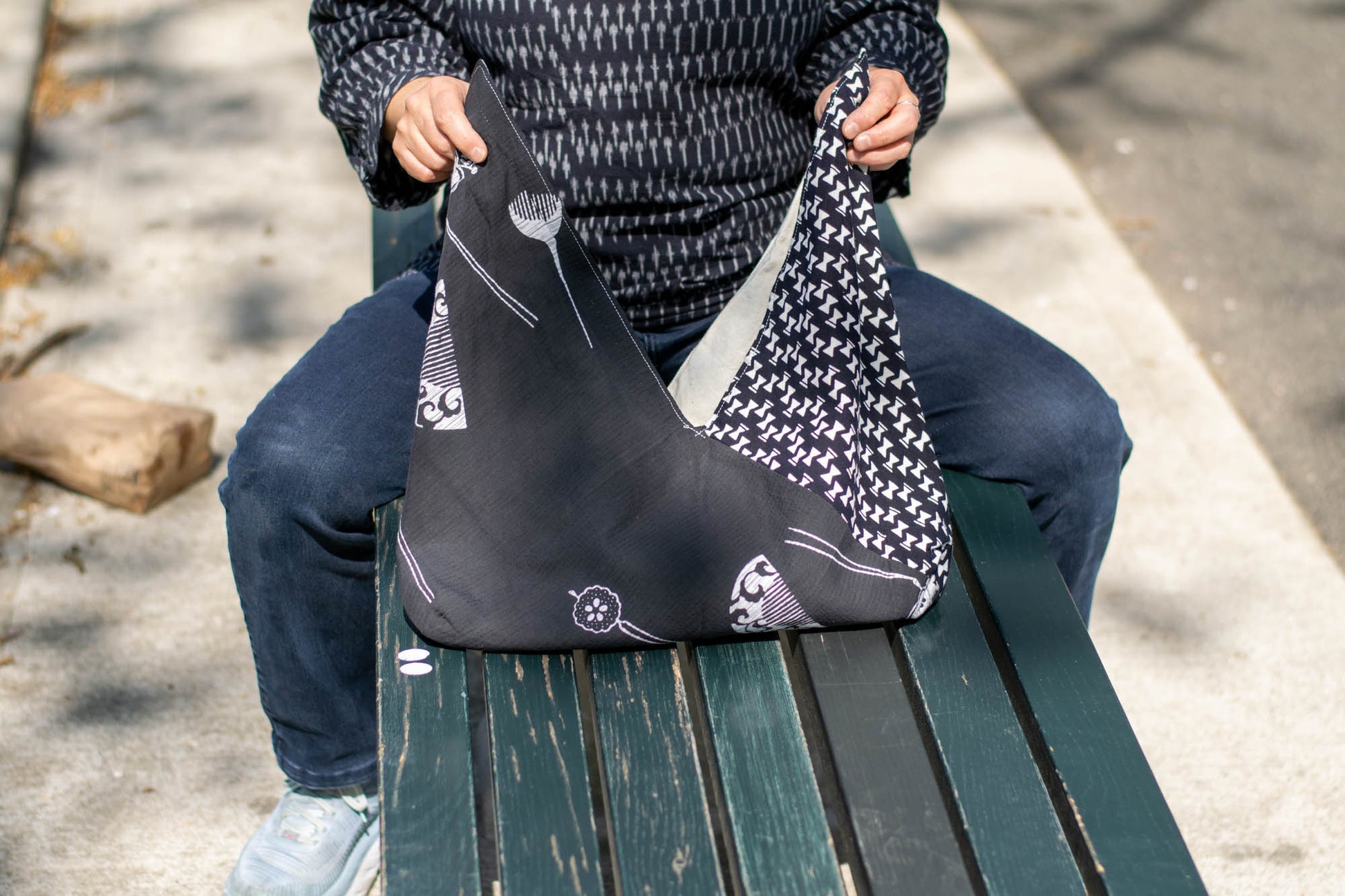Over 150 years ago, when the Japanese encountered Western culture and witnessed bags, someone was inspired to create the azuma sack, which is a hybrid of a furoshiki and a bag. An azuma sack is minimally sewn, and two ends of the fabric are tied to tote around, but can be untied to take things in and out easily.