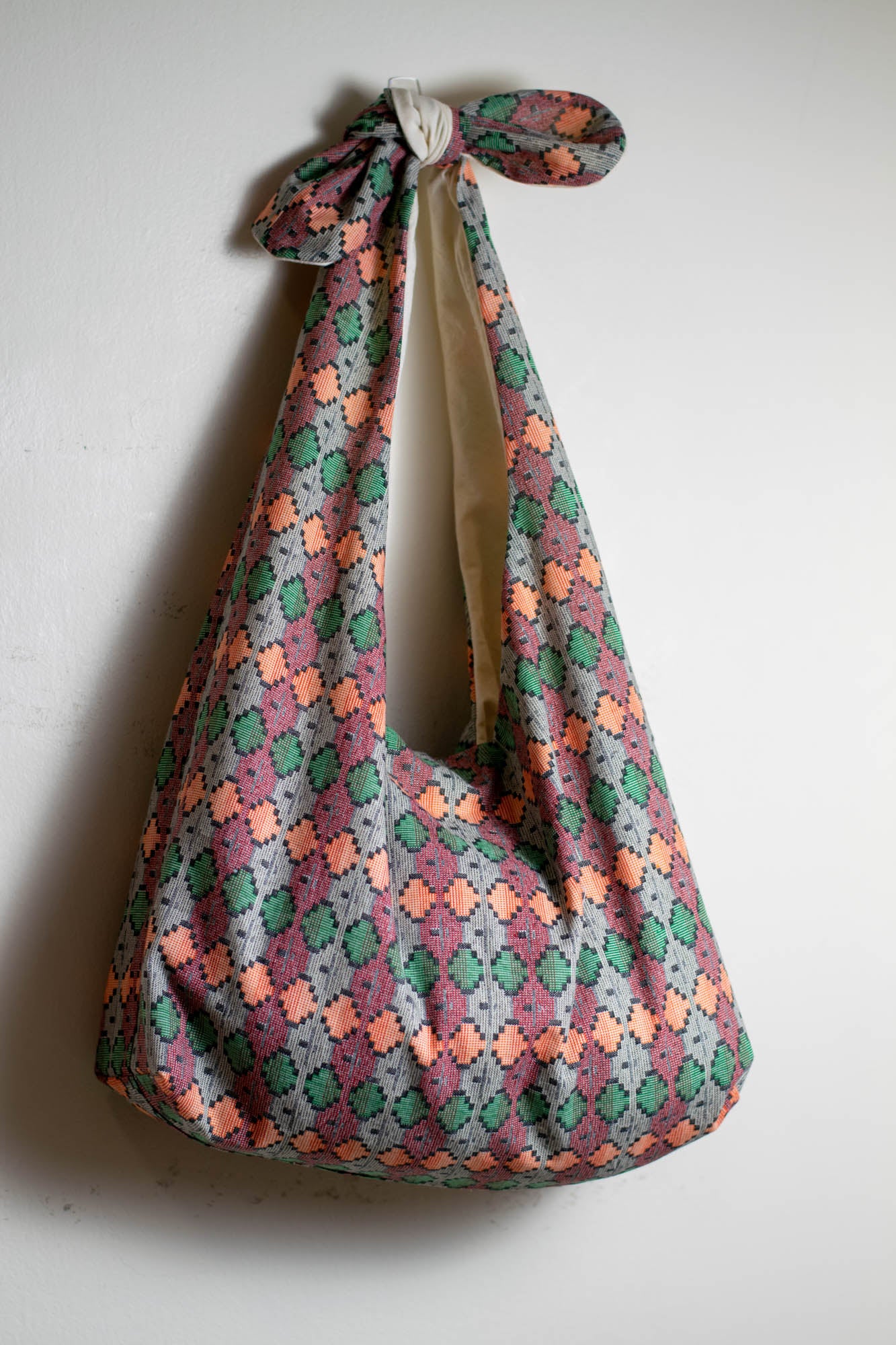 Reversible Shoulder Tie Sac Made from Salvaged Fabric — Nepali Tribal Print